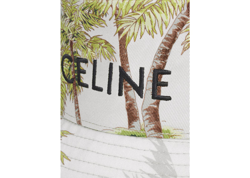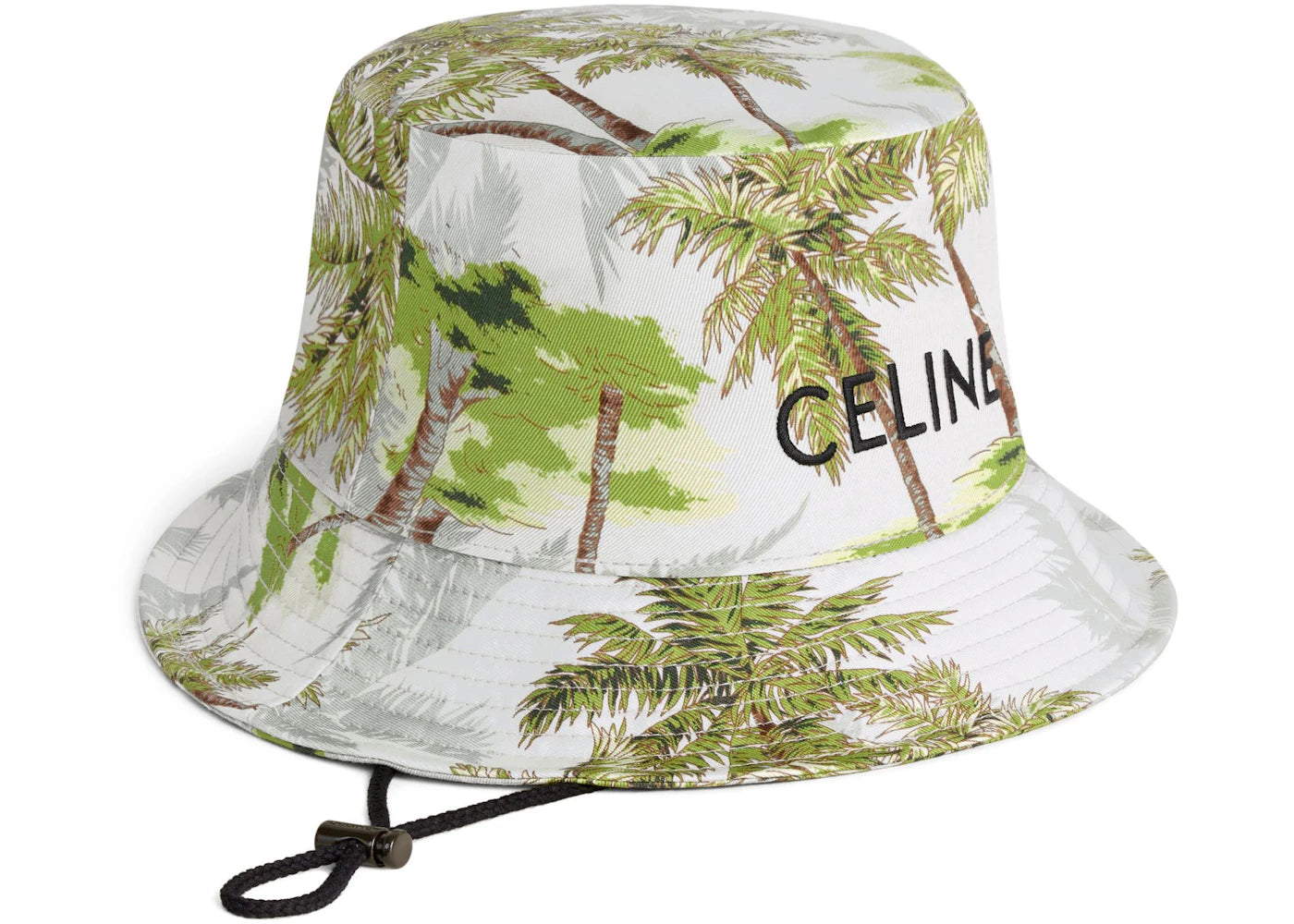 The Celine Embroidery In Ombre Palm Tree Print Cotton Gabardine Bucket Hat with Drawstring Grey/Green is now available at Side Kicks!...