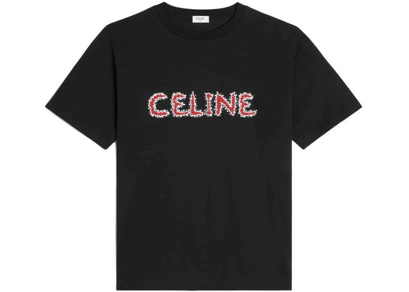 The Celine Rhinestone Loose T-shirt In Cotton Jersey Black/Red is now available at Side Kicks!