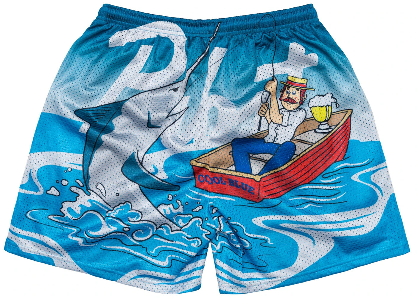 The Chalk Line Pabst Blue Ribbon Retro Fishing Shorts Blue is now available at Side Kicks!
