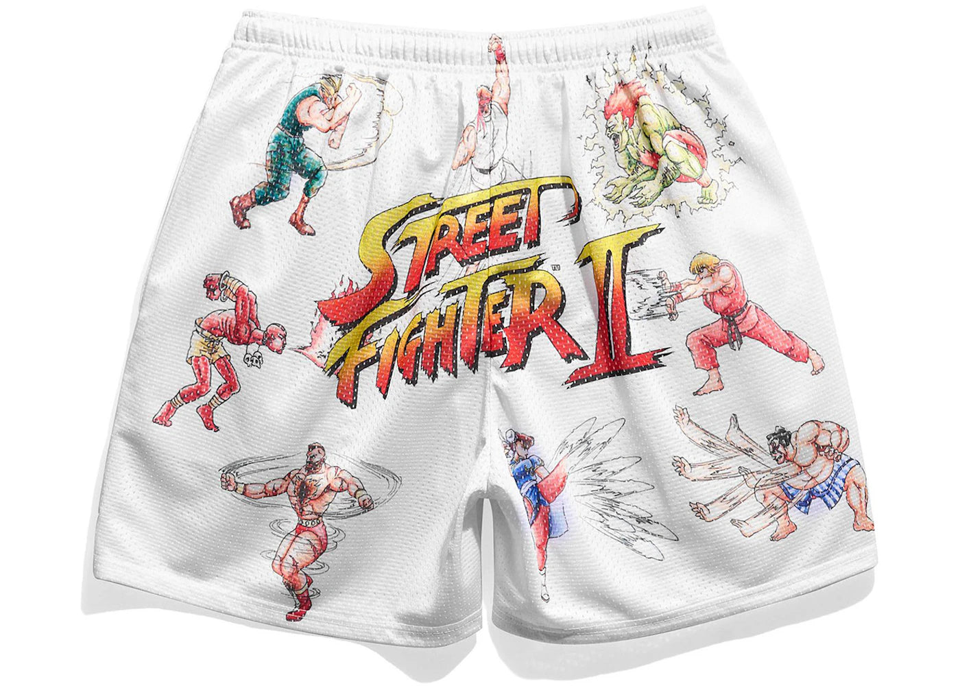 The Chalk Line Street Fighter 2 Character Concepts Retro Shorts White/Multi is now available at Side Kicks!