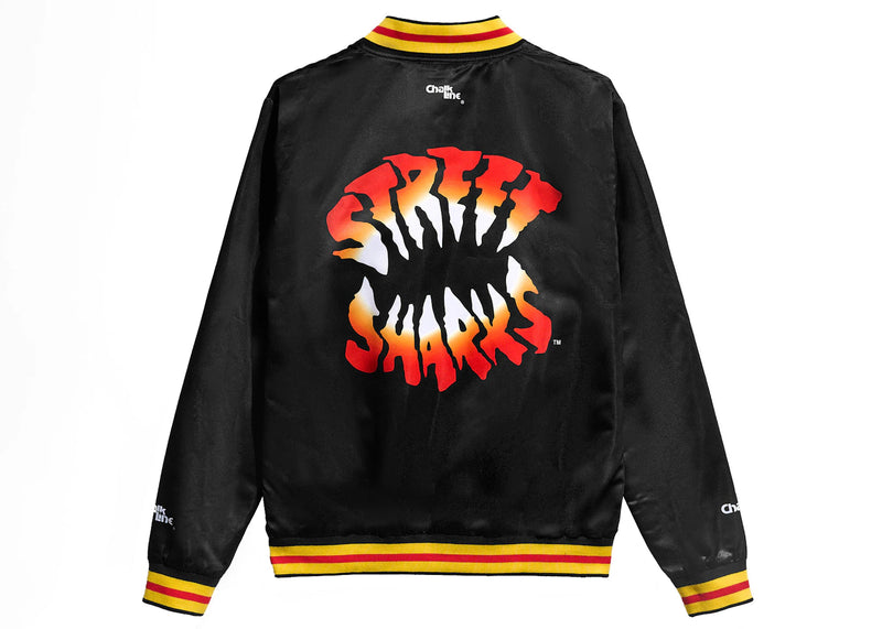 The Chalk Line Street Sharks Satin Jacket Black/Red/Multi is now available at Side Kicks!