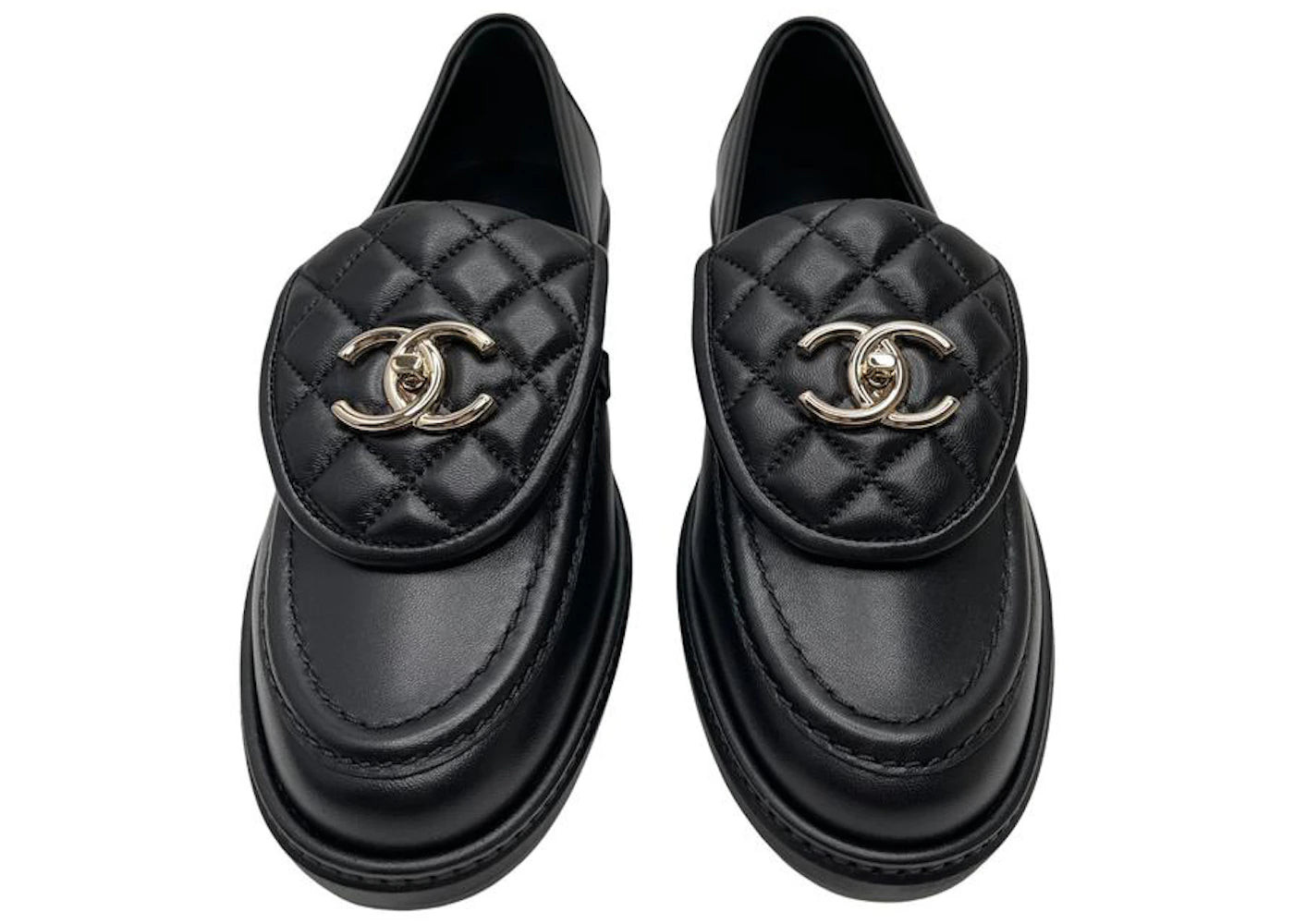 The Chanel Quilted Tab Loafers Black Leather is now available at Side Kicks!