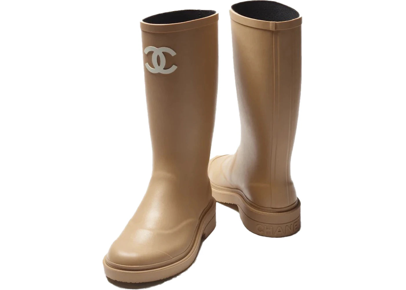 The Chanel Rubber Rain Boots Beige is now available at Side Kicks!
