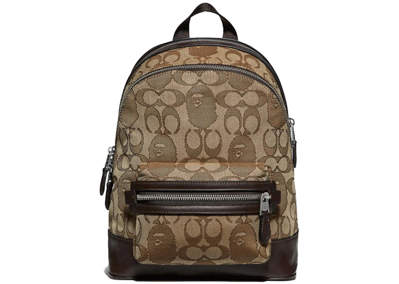 Coach x Bape Academy Backpack 23 Signature Jacquard With Ape Head Light Antique Nickel/Khaki