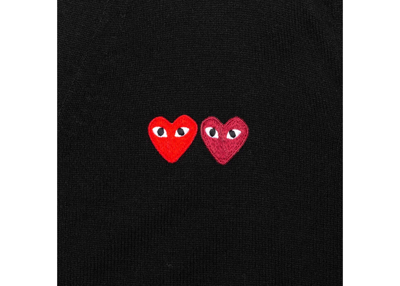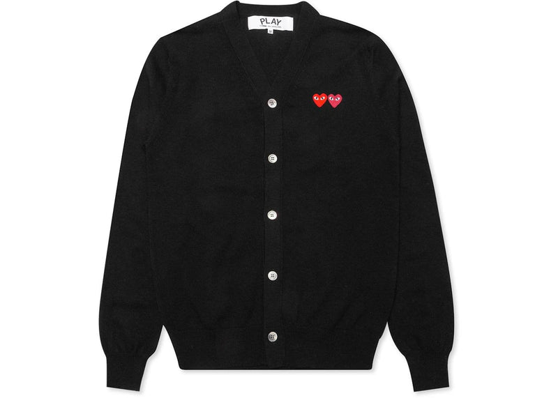 The Comme des Garcons Play Double Heart Cardigan Sweater Black is now available at Side Kicks!