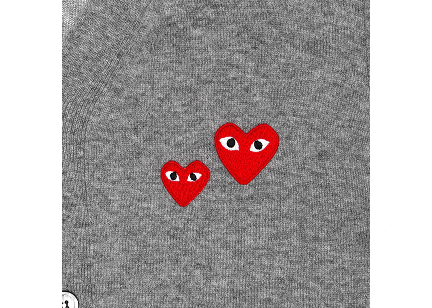 The Comme des Garcons Play Double Heart Cardigan Sweater Grey is now available at Side Kicks!