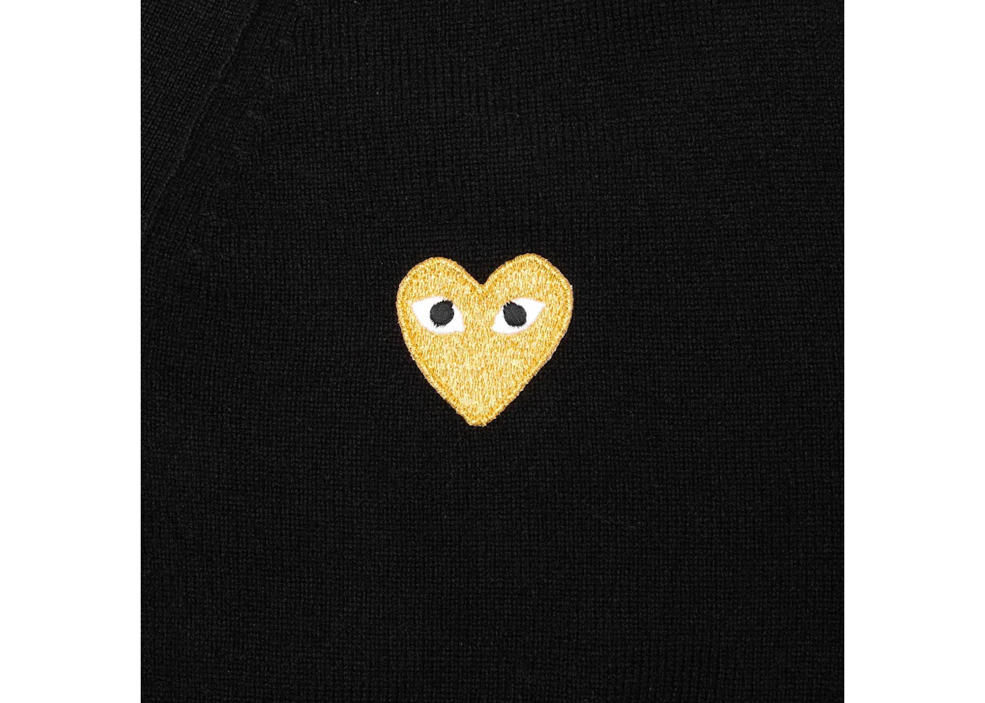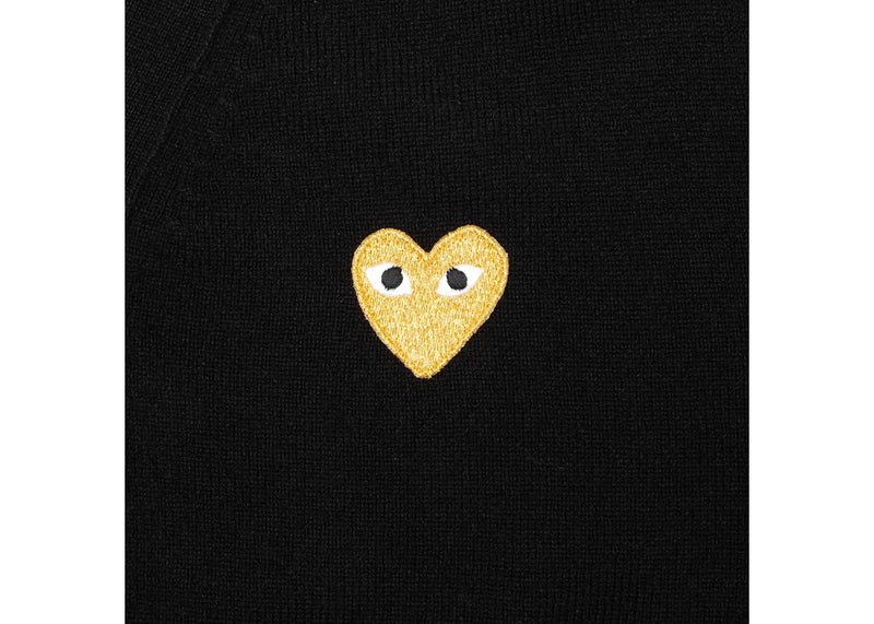 The Comme des Garcons Play Gold Heart Knit Cardigan Sweater Black is now available at Side Kicks!