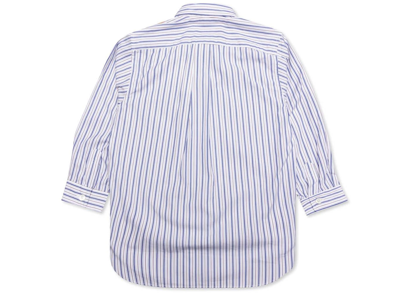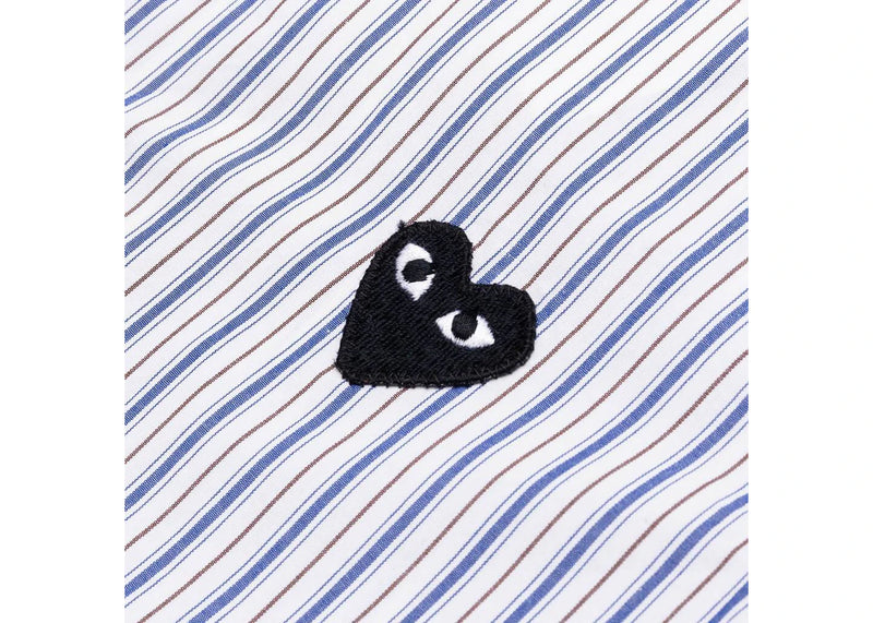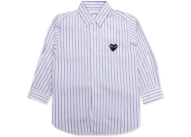 The Comme des Garcons Play Kid's Black Emblem Striped Button Up Shirt Blue/White/Brown is now available at Side Kicks!