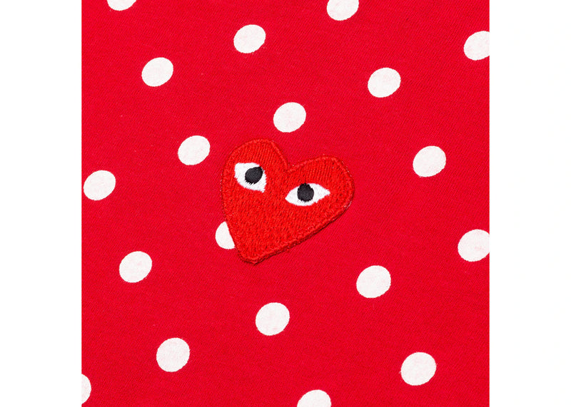 The Comme des Garcons Play Polka Dot L/S T-shirt Red is now available at Side Kicks!