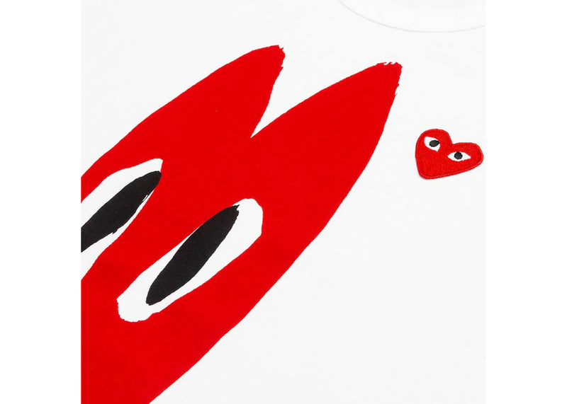 The Comme des Garcons Play Red Emblem Long Heart T-shirt White is now available at Side Kicks!