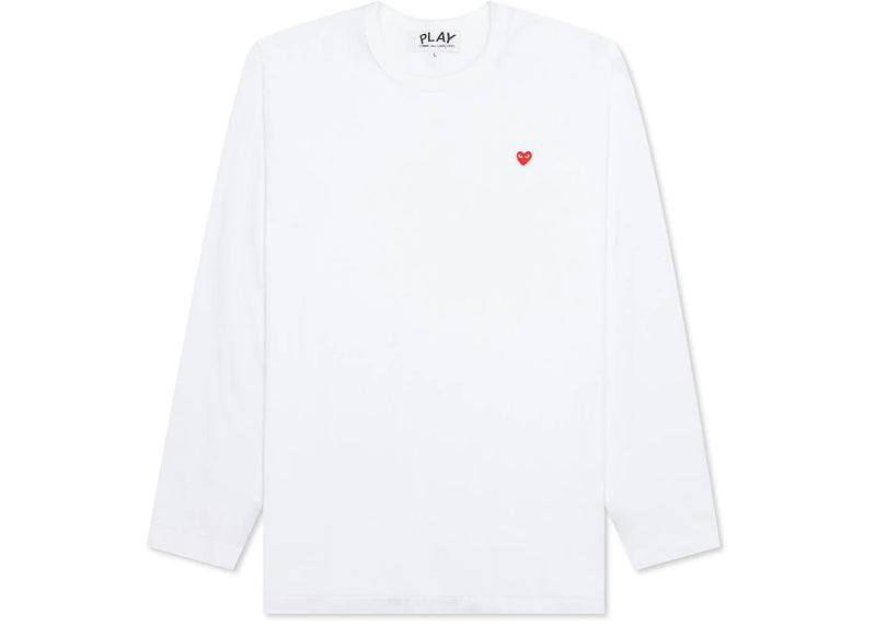 The Comme des Garcons Play Small Red Heart L/S T-shirt White is now available at Side Kicks!