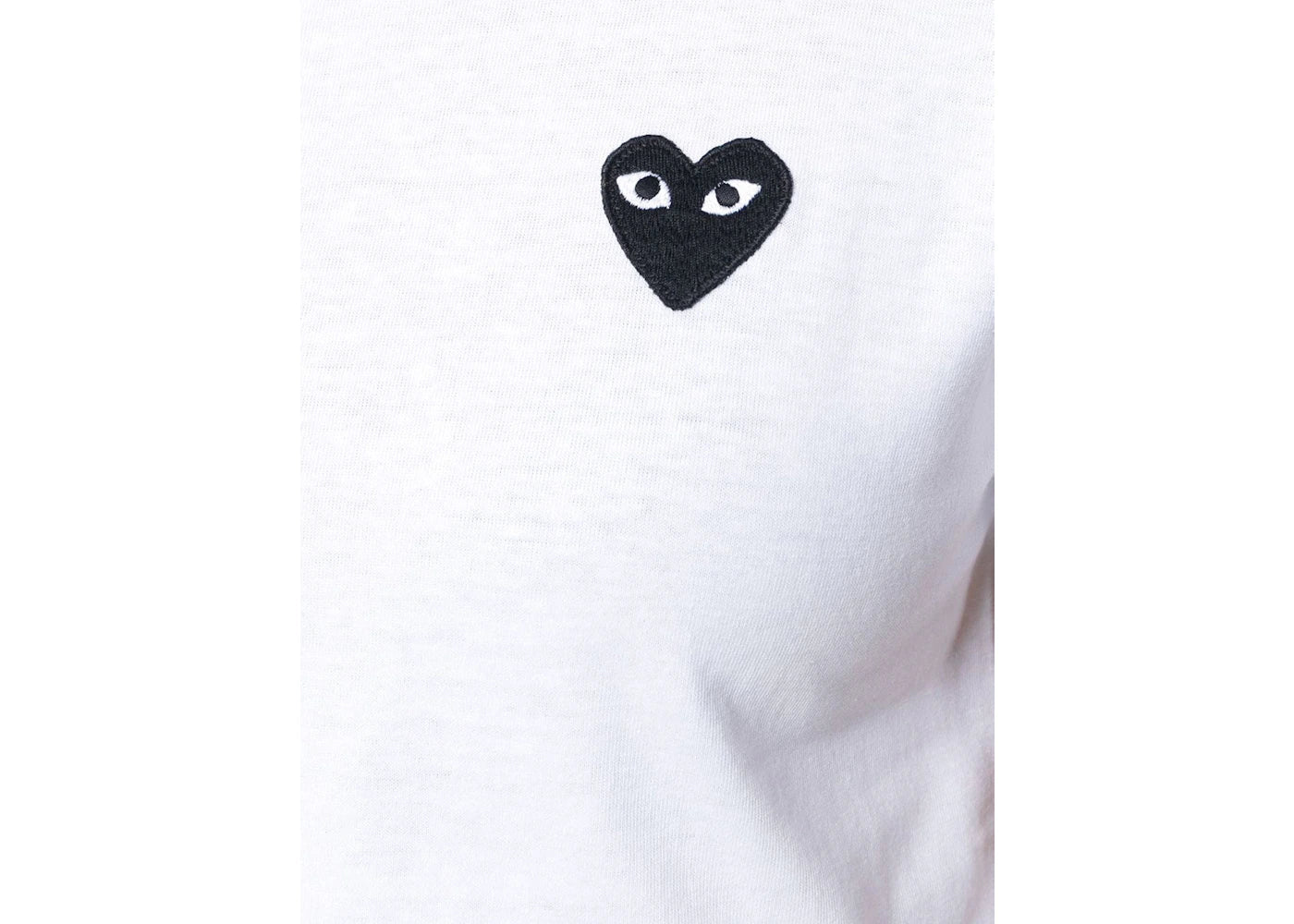 The Comme des Garcons Play Women's Black Emblem T-Shirt White/Black (SS22) is now available at Side Kicks!