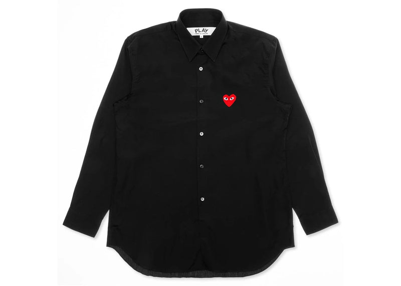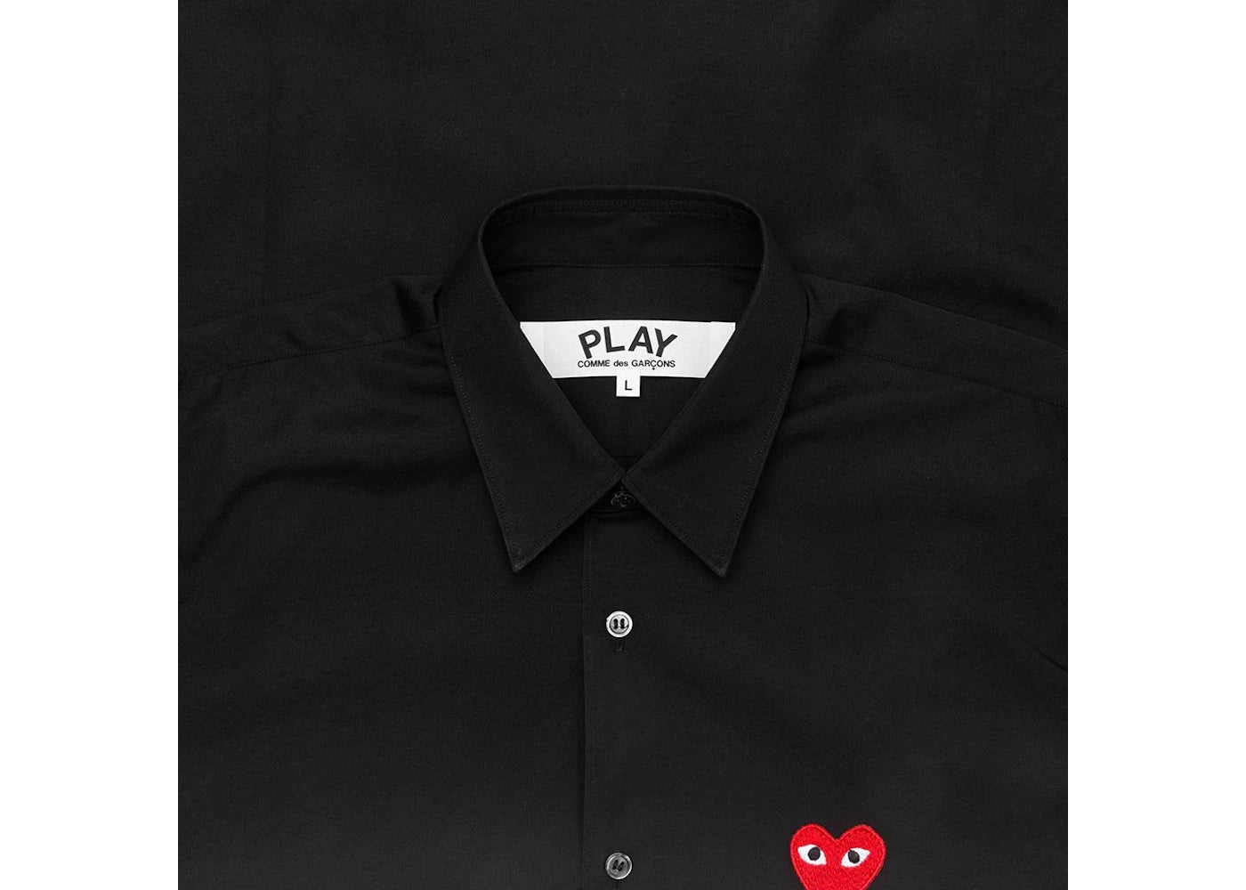 The Comme des Garcons Play Women's Red Emblem Button Up Shirt Black is now available at Side Kicks!