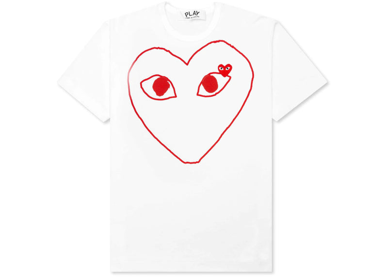 The Comme des Garcons Play Women's Red Emblem Outline T-shirt White is now available at Side Kicks!
