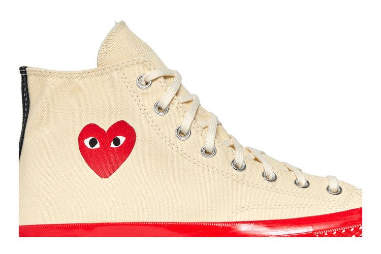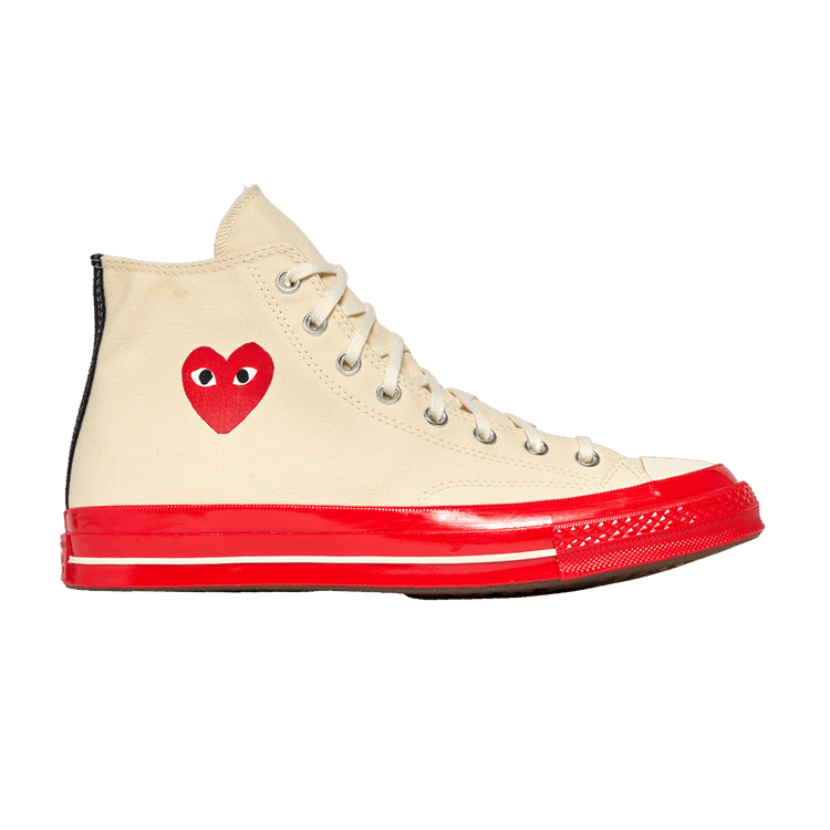 The Converse Chuck Taylor All Star 70 Hi Comme des Garcons PLAY Egret Red Midsole is now available at Side Kicks!