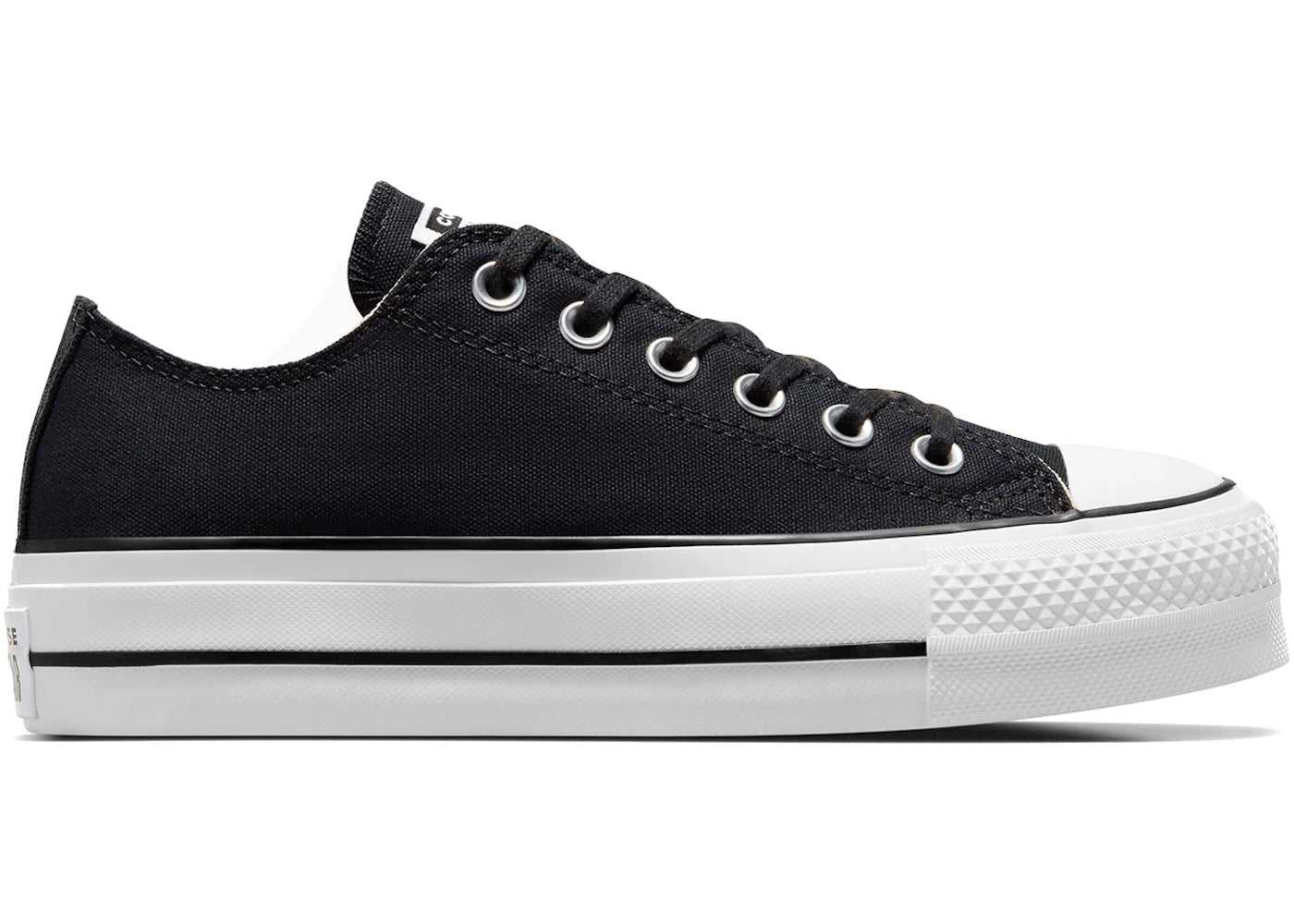 The Converse Chuck Taylor All Star Lift Platform Low Black White (Women's) is now available at Side Kicks!