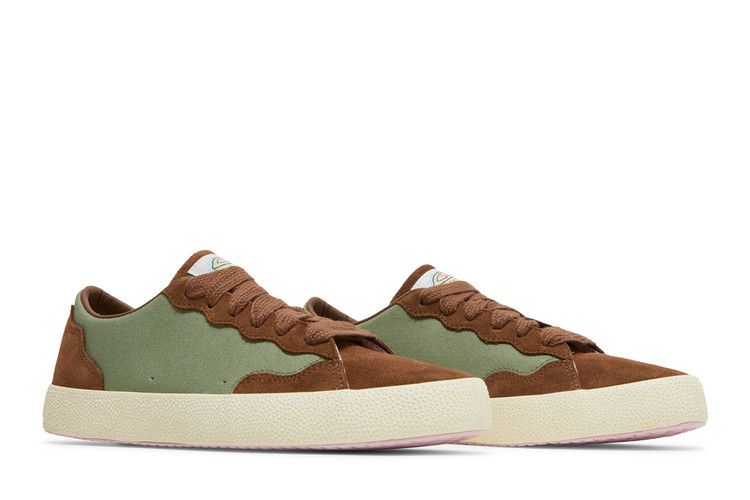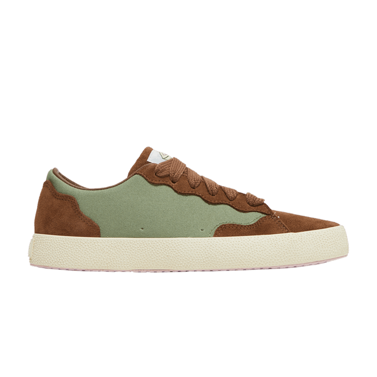 The Converse GLF 20 Golf le Fleur Oil Green combines dark Bison Brown suede with an Oil Green canvas base, accented by thick brown laces, a yellowed midsole, and a light pink outsole. The shoe features a traditional lace-up closure for a secure fit and a durable construction for performance on the course. Released on June 9, 2022, the Converse GLF 20 Golf le Fleur Oil Green is available now at Side Kicks.