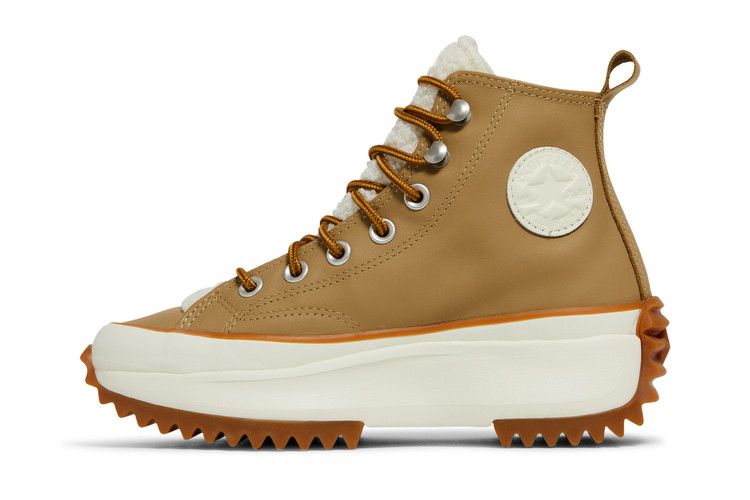 The Converse Run Star Hike Hi Platform Sherpa Leather Nomad Khaki Egret Wheat (Women's) is now available at Side Kicks!