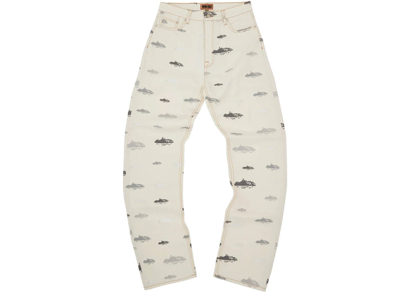 The Corteiz Alcatraz Pattern Denim Jeans White is now available at Side Kicks!