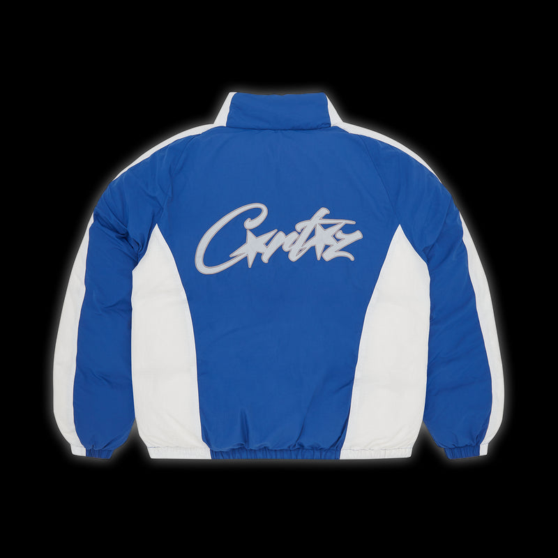 The Corteiz Avalanche Bolo Down Jacket Blue is now available at Side Kicks!