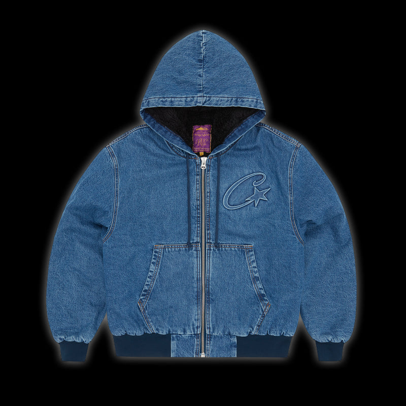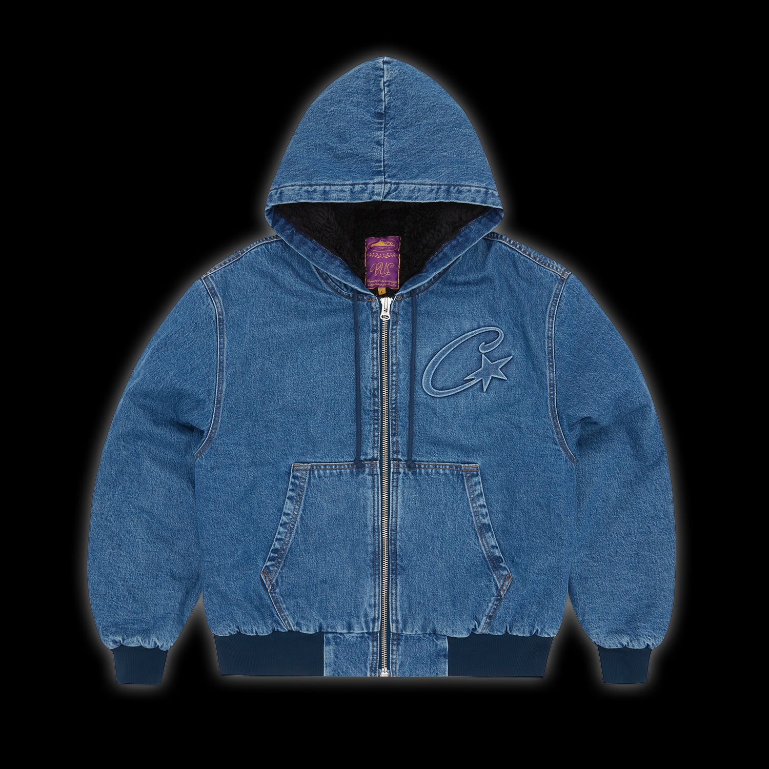 The Corteiz Embossed C-star Denim Work Jacket - blue is now available at Side Kicks!