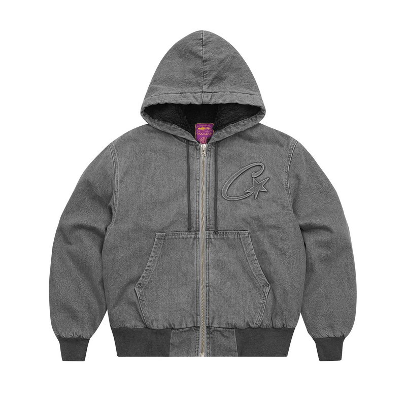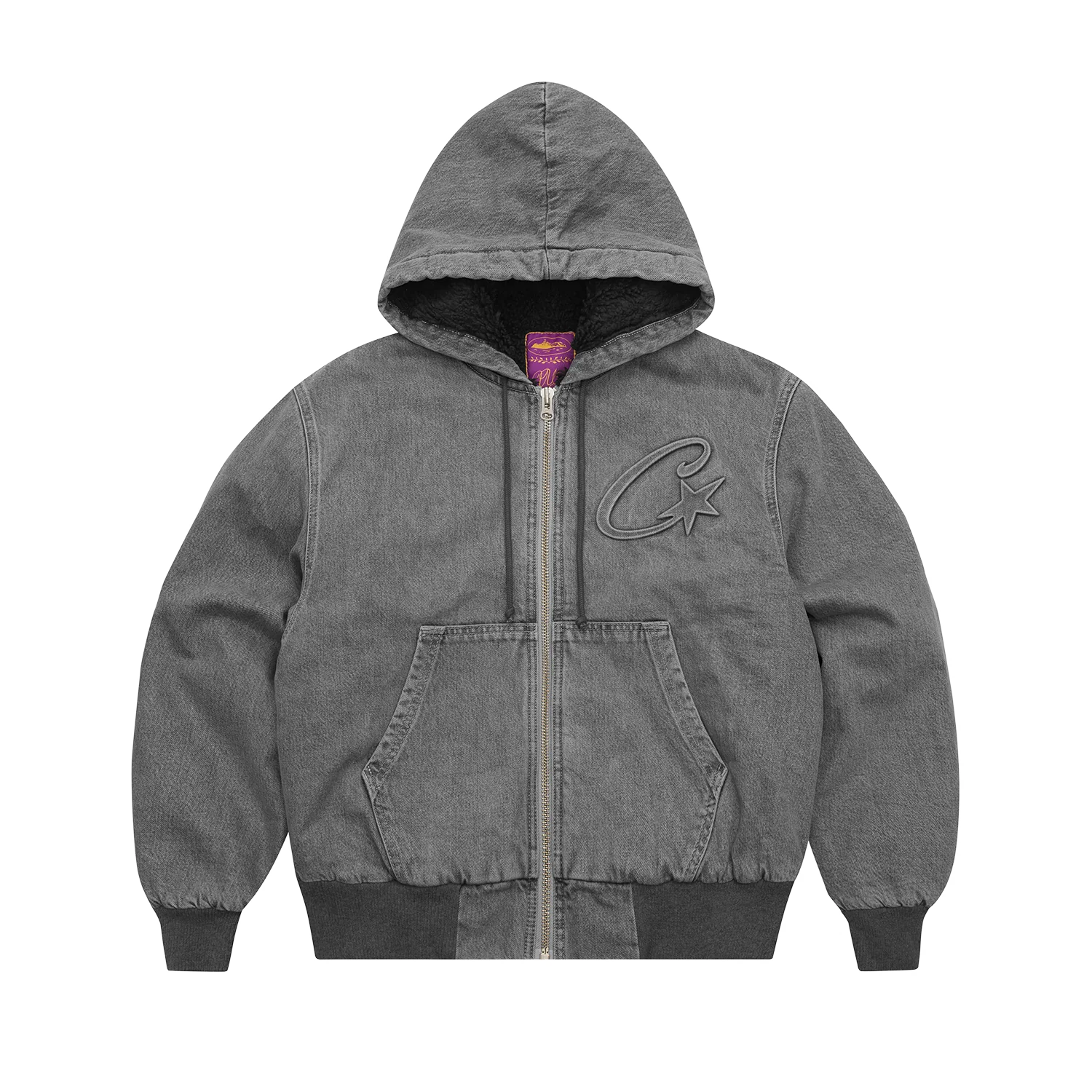 Corteiz Embossed C-star Denim Work Jacket Grey