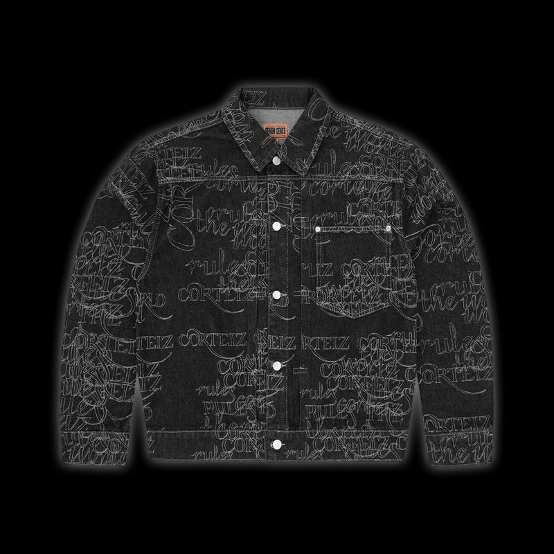 The Corteiz Handwritten Denim Trucker Black is now available at Side Kicks!