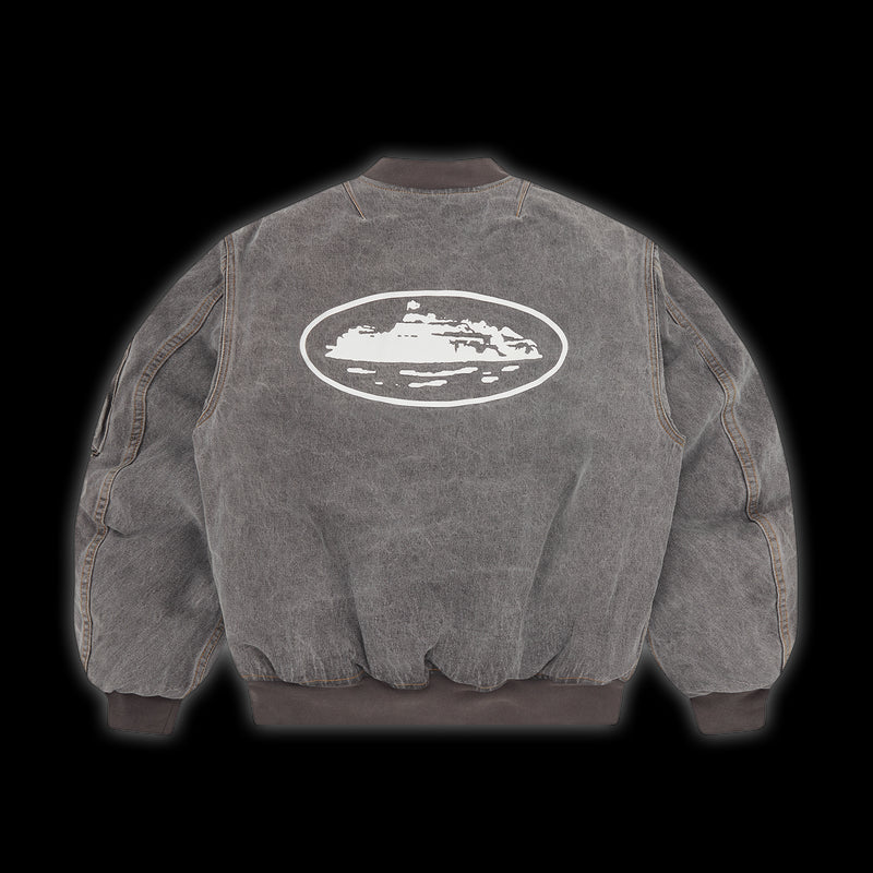 The Corteiz Island Bomber Jacket Light Grey is now available at Side Kicks!