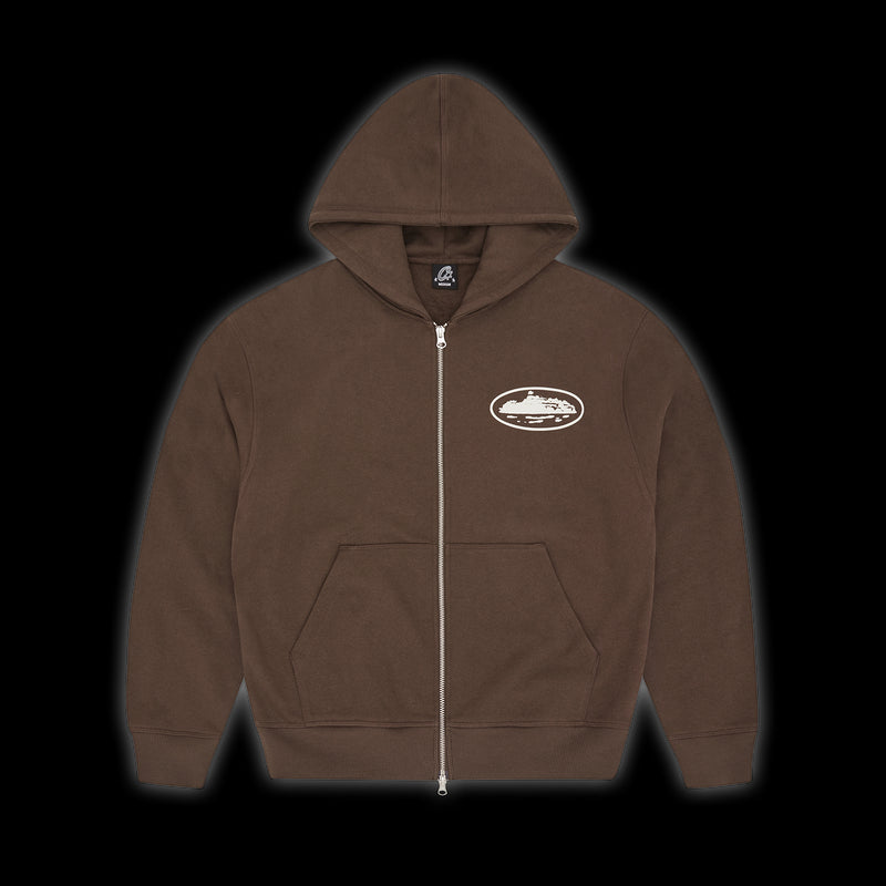 The Corteiz Island Puff Print Zip Hoodie Brown is now available at Side Kicks!