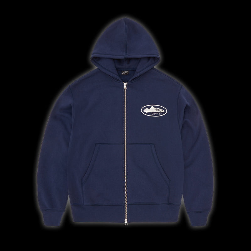 Corteiz Island Puff Print Zip Hoodie Navy
