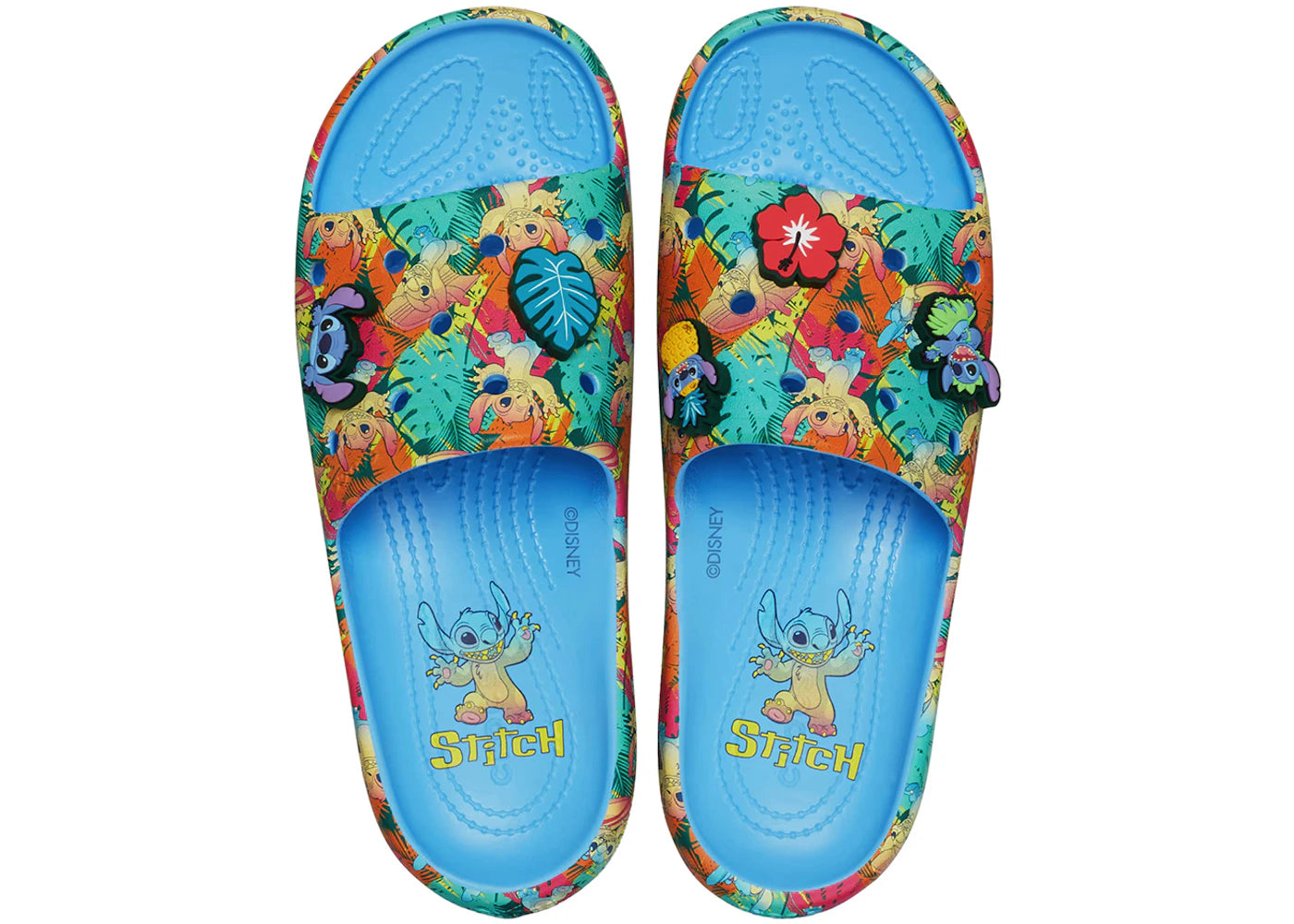 The Crocs Classic Slide Disney Stitch is now available at Side Kicks!