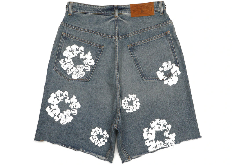 The Denim Tears The Cotton Wreath Jean Short Light Wash is now available at Side Kicks!