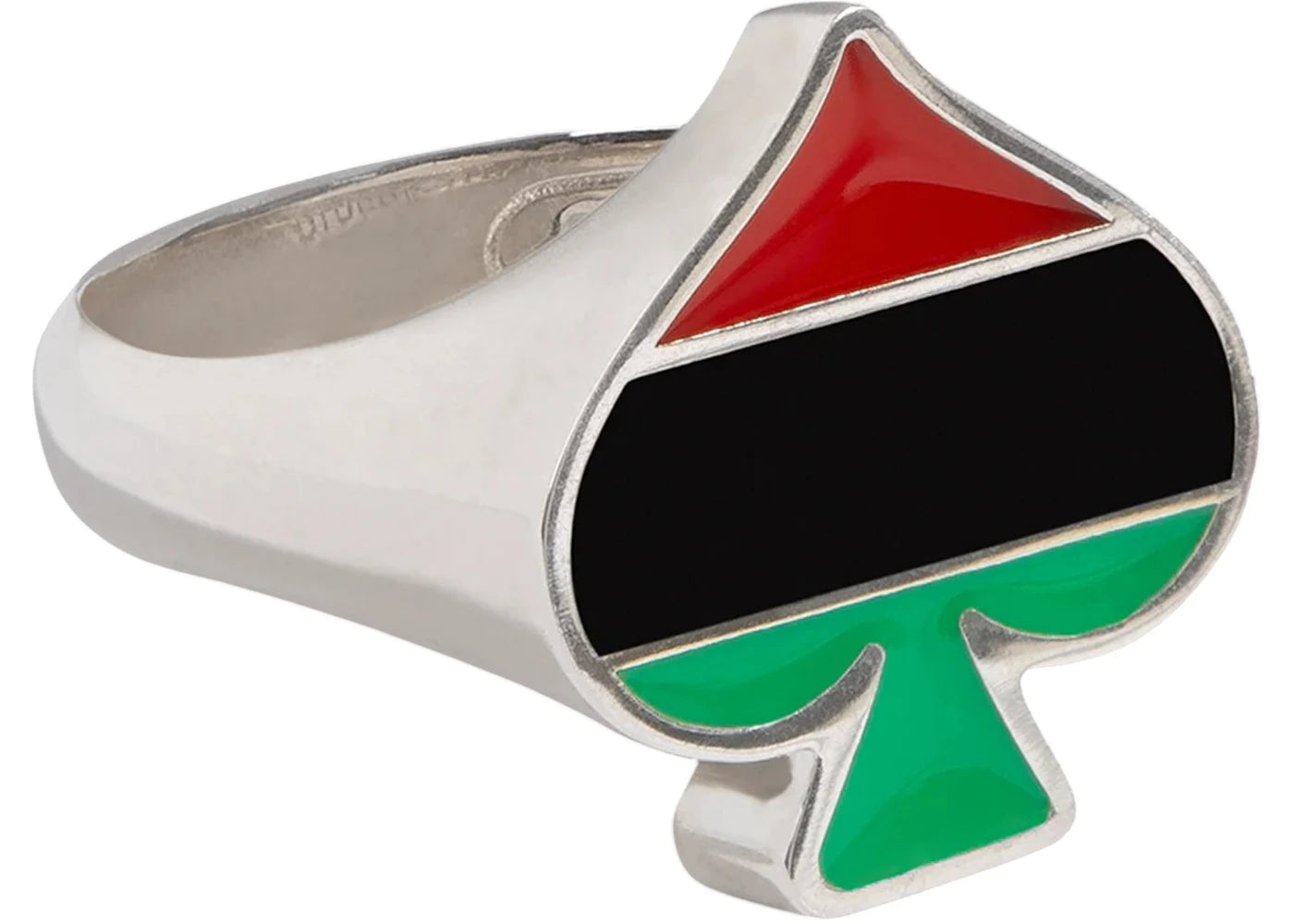 The Denim Tears x Stussy RBG Spade Ring Silver is now available at Side Kicks!
