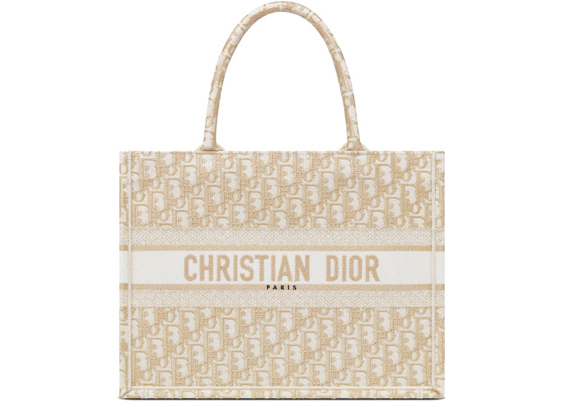 The Dior Medium Book Tote Medium Dior Oblique Embroidery Gold is now available at Side Kicks!