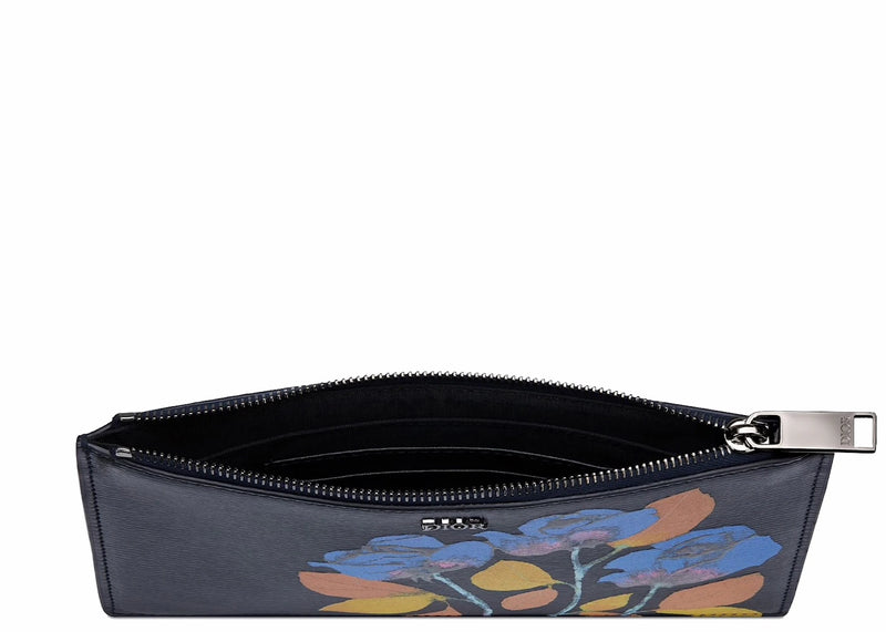 Dior Pouch Textured Calfskin Alex Foxton Print Navy Blue