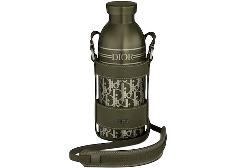 The Dior Shoulder Strap Aqua Bottle Olive/Dior Oblique Stainless Steel is now available at Side Kicks!
