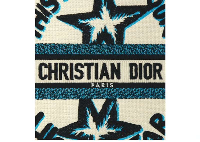 Dior Vertical Book Tote Lucky Star Embroidery White Multicolor