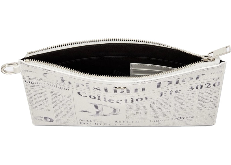 Dior x Daniel Arsham Zip Pouch Newspaper Print Grained Calfskin White