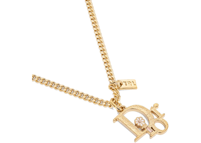 Dior x ERL Pendant Necklace Gold-Finish Brass with White Enamel and White Crystals