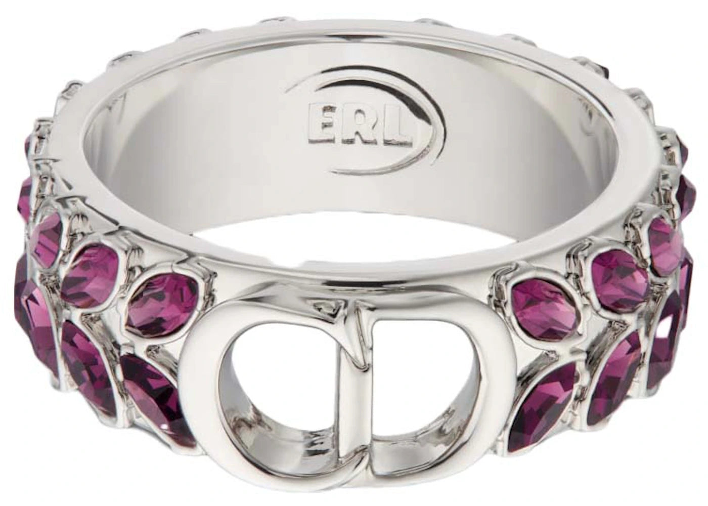 Dior x ERL Ring Silver-Finish Brass and Purple Crystals