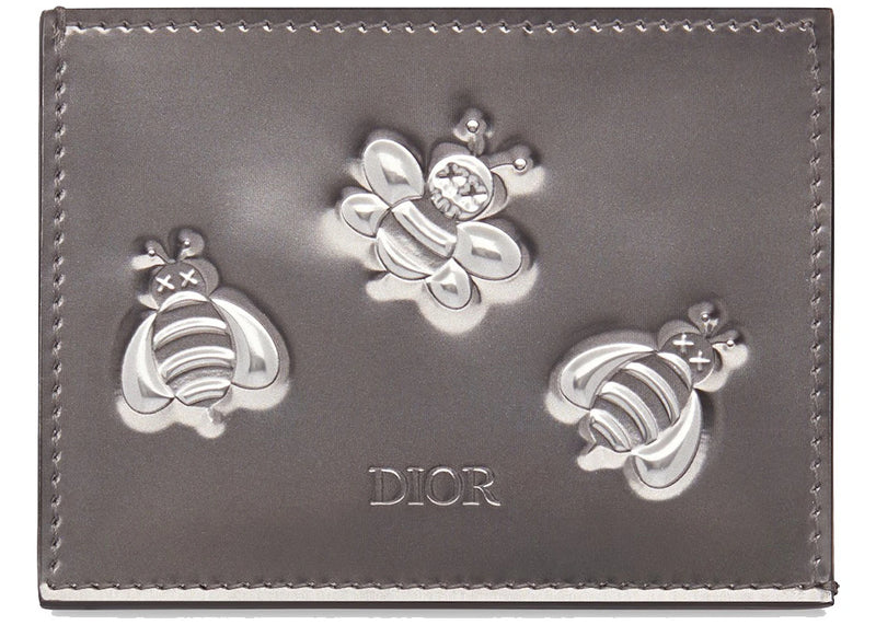 Dior x Kaws Card Holder Calfskin Bee Print Silver