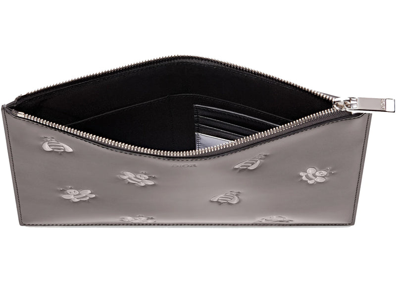 Dior x Kaws Pouch Calfskin Bee Print Silver