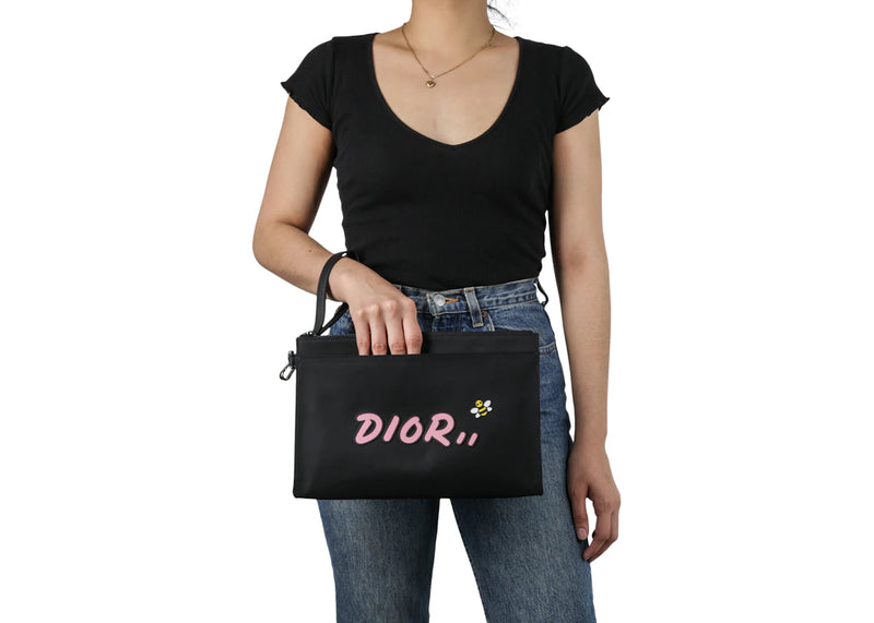 Dior x Kaws Pouch Pink Logo Nylon Black