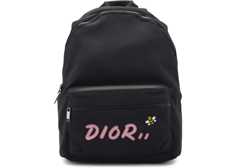 The Dior x Kaws Rider Backpack Pink Logo Nylon Black is now available at Side Kicks!