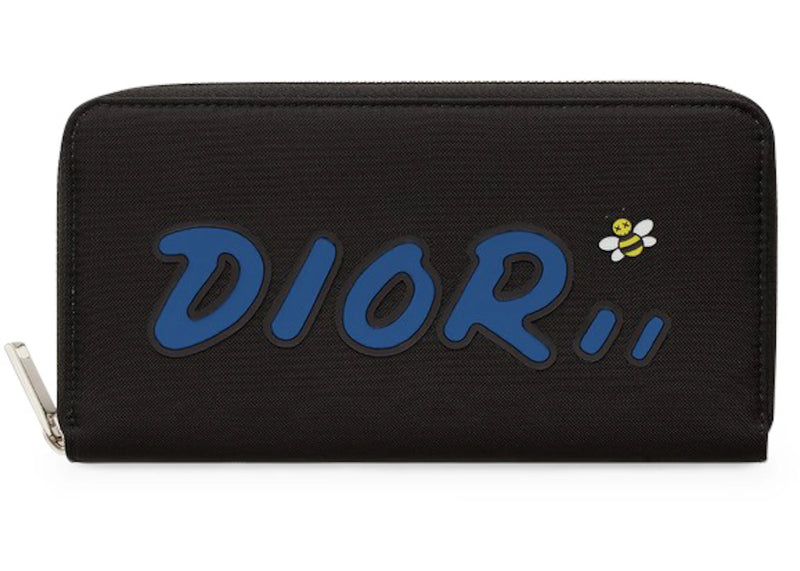 Dior x Kaws Zippered Wallet Blue Logo Nylon Black