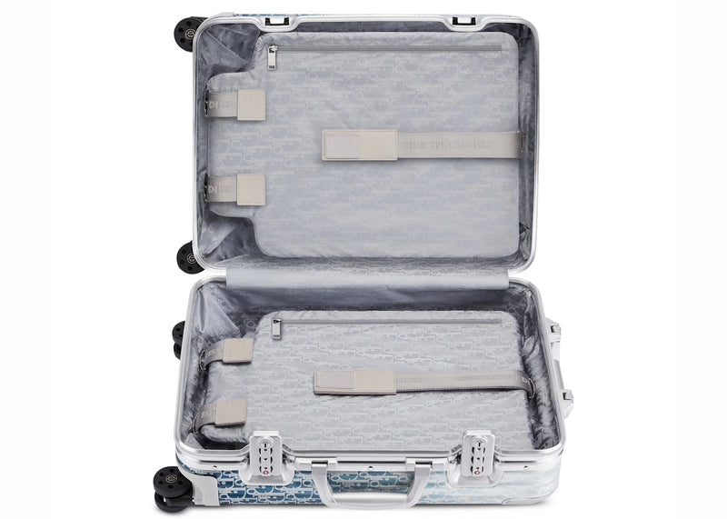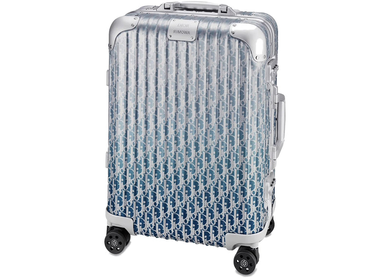 The Dior x RIMOWA 4-Wheel Cabin Suitcase Aluminium Dior Oblique Blue Gradient is now available at Side Kicks!