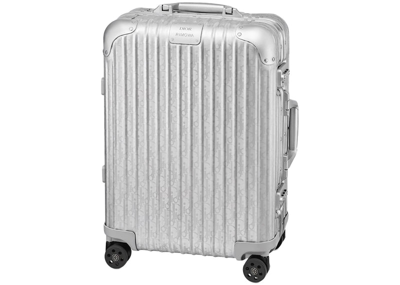 The Dior x RIMOWA 4-Wheel Cabin Suitcase Aluminium Dior Oblique Silver is now available at Side Kicks!