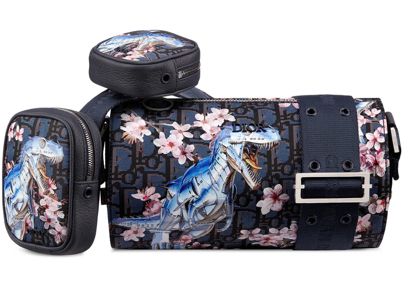 The Dior x Sorayama Messenger Bag Plugs In Oblique Safari Nylon Blue is now available at Side Kicks!