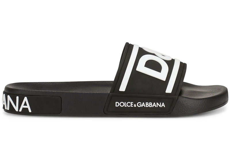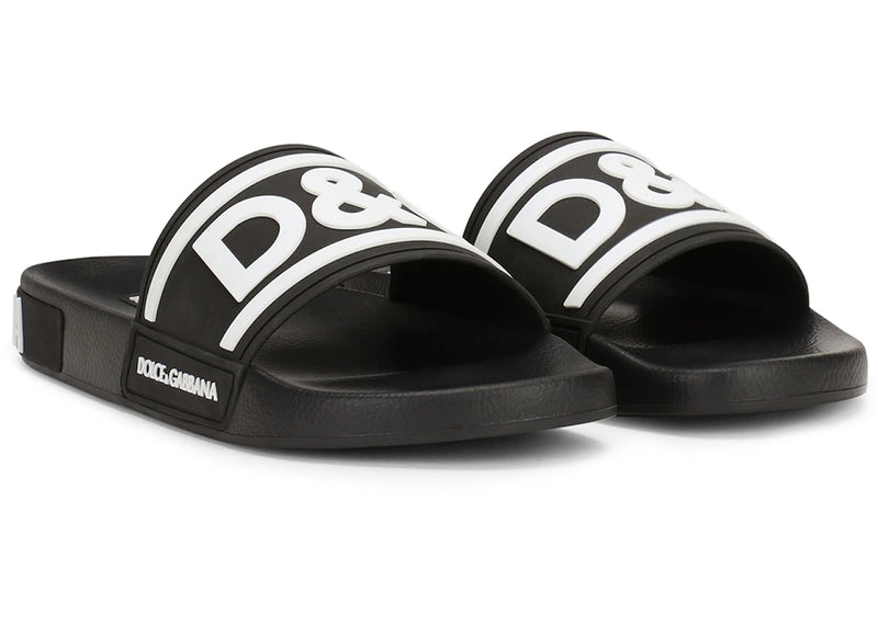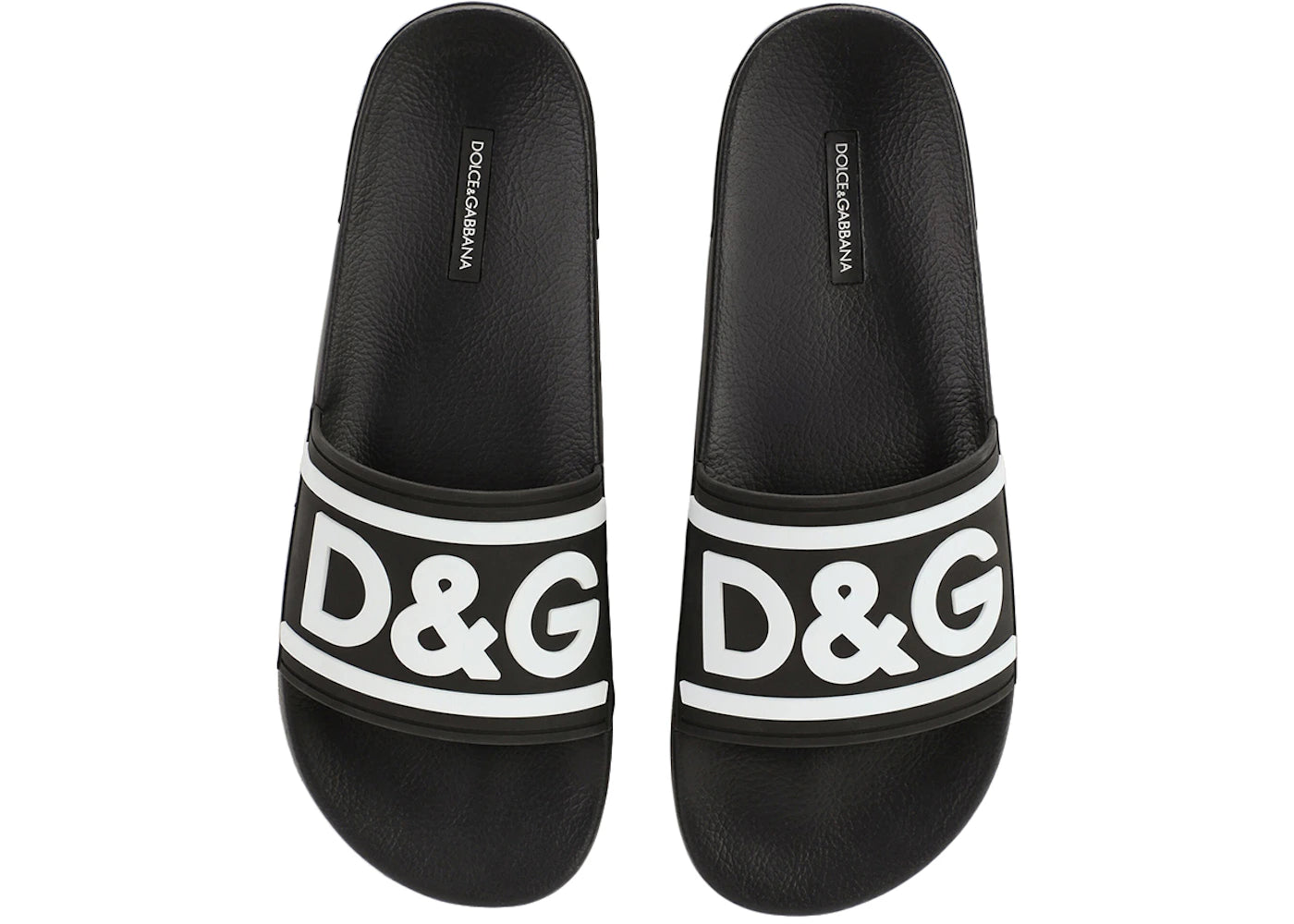 The Dolce & Gabbana Beachwear Sliders Double DG Logo Black White is now available at Side Kicks!