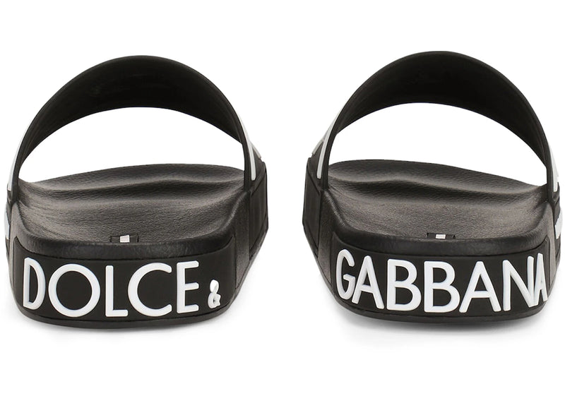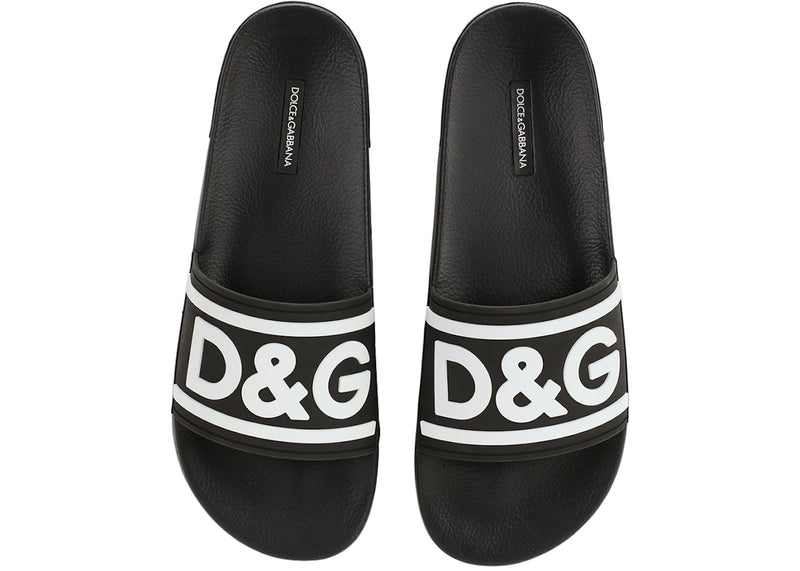 Dolce & Gabbana Beachwear Sliders Double DG Logo Black White